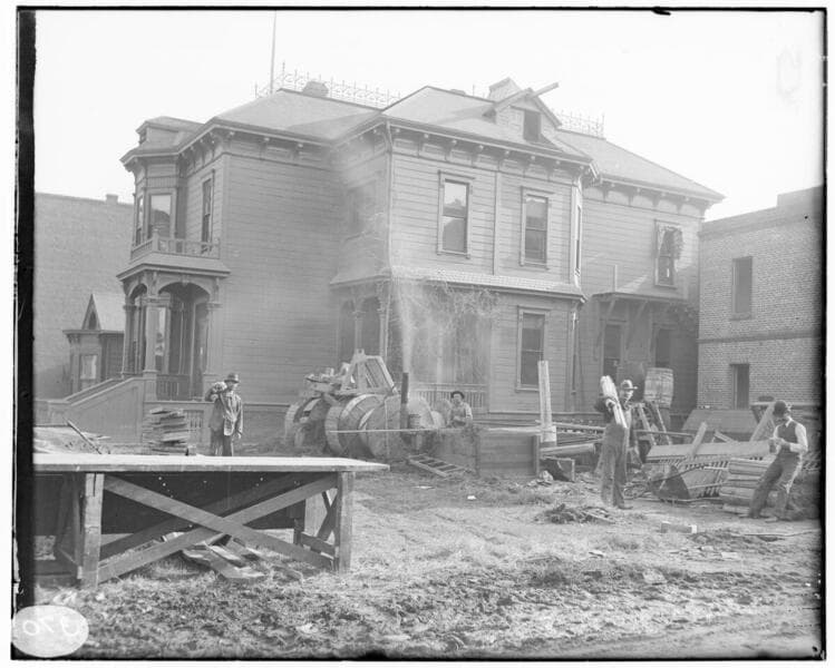 A construction crew working on the construction of the Fourth Street General Office Building