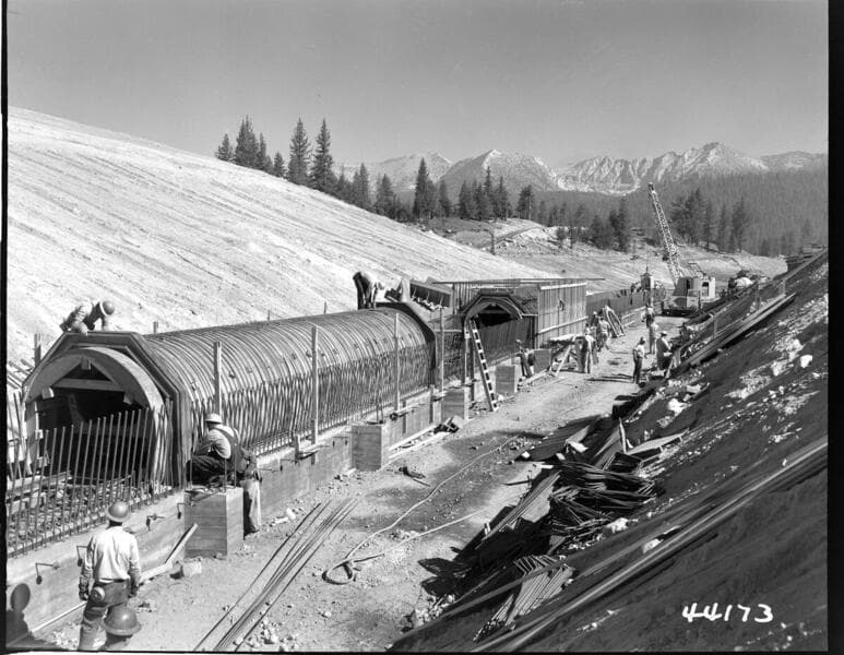 Big Creek, Vermilion Dam - Placing reinforcing steel in Outlet Conduit.