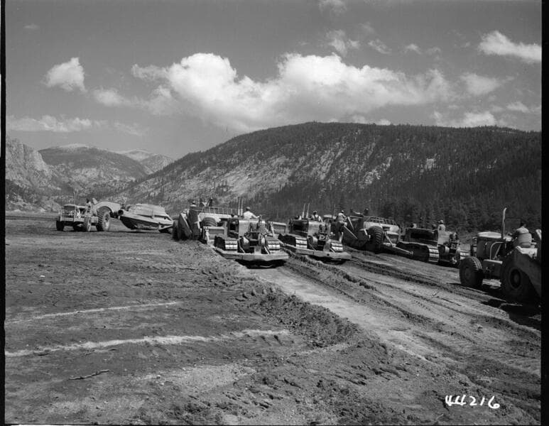 Big Creek, Vermilion Dam - Loading Carryall in Borrow Pit #4.
