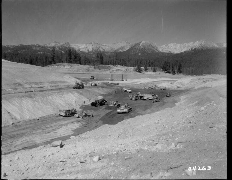 Big Creek, Vermilion Dam - Back fill and compacting operations in Mono Channel.
