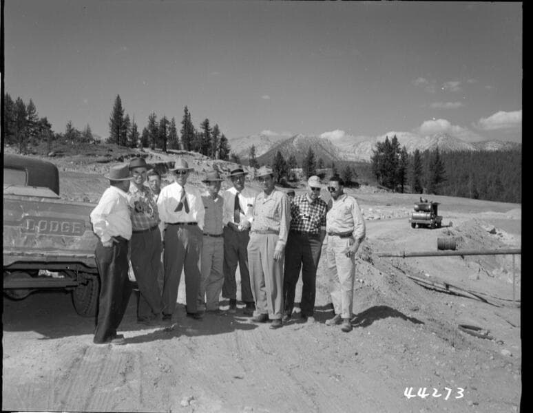 Big Creek, Vermilion Dam - Group of men [at Edison Lake Monument]