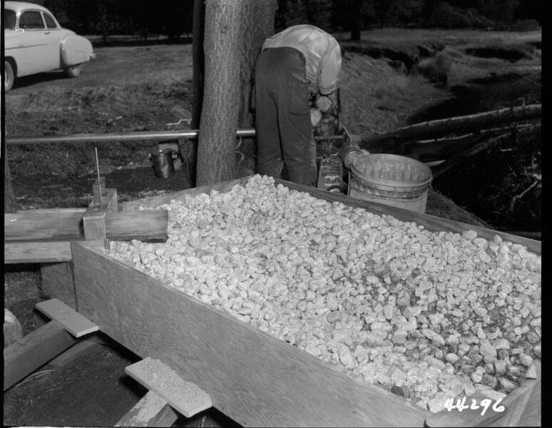 Big Creek, Vermilion Dam - Discharge end of model spillway after flow cut off.