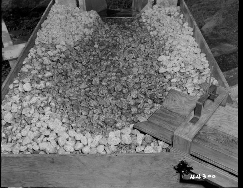 Big Creek, Vermilion Dam - Discharge end of Model Spillway - Water flowing.