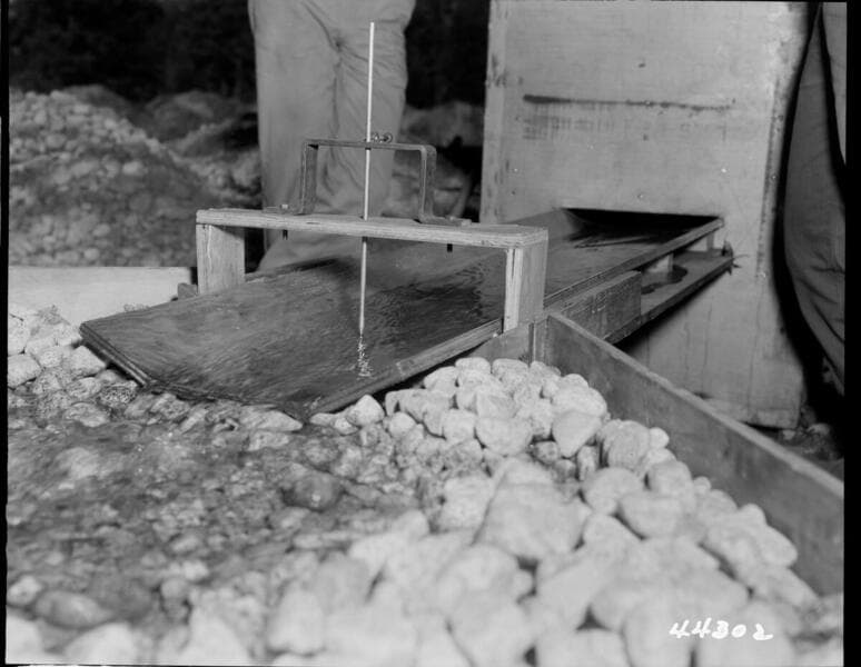 Big Creek, Vermilion Dam - Discharge end of model spillway after flow cut off.