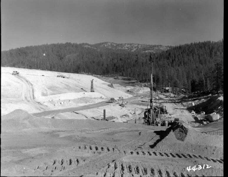 Big Creek, Vermilion Dam - Sandy phase of "bridge" silt near downstream toe of dam east of Mono Creek.