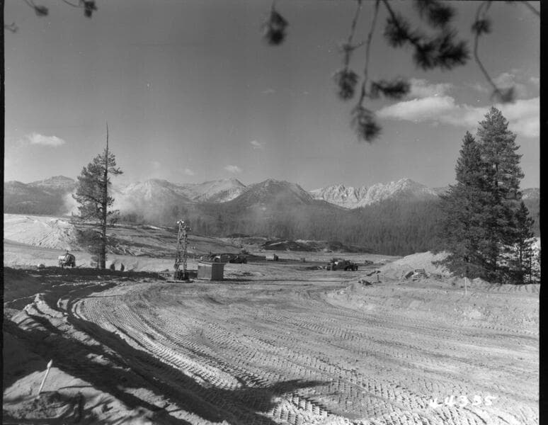 Big Creek, Vermilion Dam - Temporary flume in stilling basin.