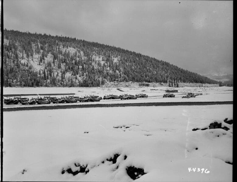 Big Creek, Vermilion Dam - Shephard Equipment Co. airplane in borrow pit area.