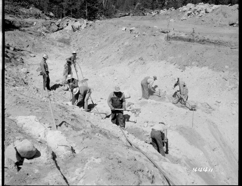 Big Creek, Vermilion Dam - Exterior forms for anchor section of spillway discharge.