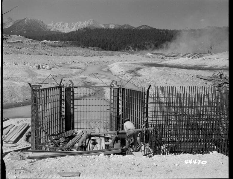 Big Creek, Vermilion Dam - Placing reinforcing bars at intake structure.