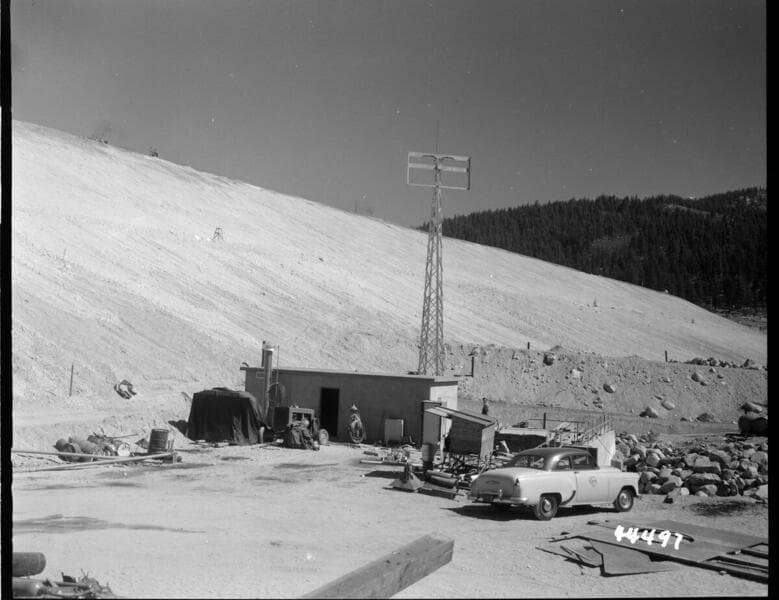 Big Creek, Vermilion Dam - Valve control house showing view of microwave tower.