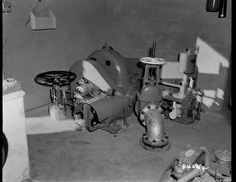 Big Creek, Vermilion Dam - Fishwater turbine in valve house. [variant of #44542, marked void]