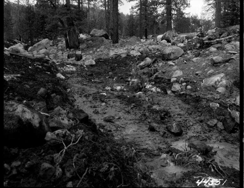 Big Creek, Vermilion Dam - Clearing site for aux[iliary] drain #2. Dozer near upstream end of proposed excavation.