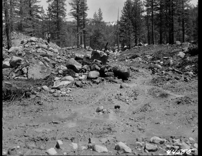 Big Creek, Vermilion Dam - Aux[iliary] Drain #2. Tarpaper protection over cobble laterals.