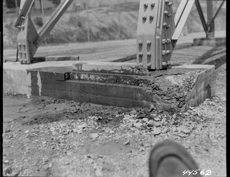 Big Creek #1 - Switchyard - Cutting sample concrete for Portland Cement Association.