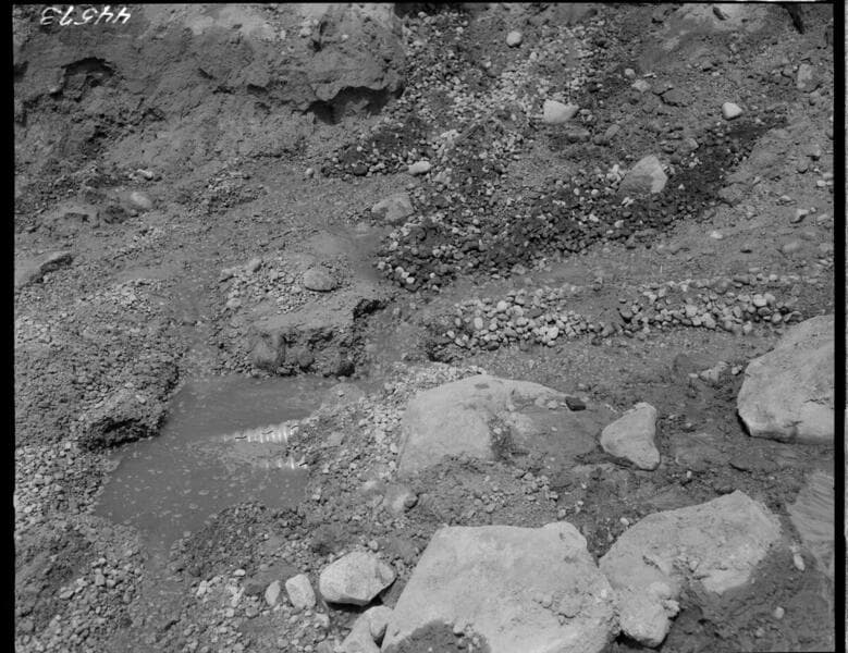 Big Creek, Vermilion Dam - Aux[iliary] Drain #2. Flow of silty water near upper end of excavation.