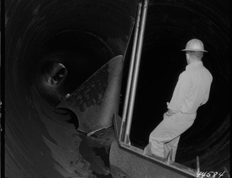 Portal Powerhouse - Close-up of splitter along bottom weld in Penstock Wye.