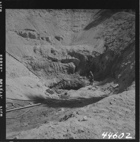 Portal Powerhouse - First stage of Surge Tank excavation. Rock near top is decomposed granite.
