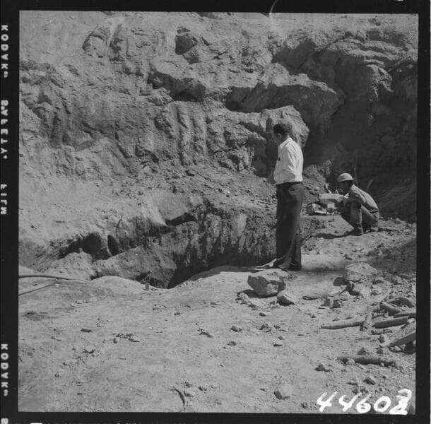 Portal Powerhouse - First stage of Surge Tank excavation. Rock near top is decomposed granite.