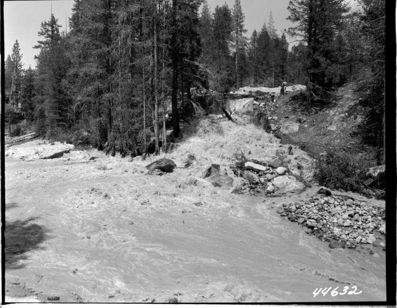 Big Creek, Vermilion Dam - Service spillway after initial spill. Compare with 44628.