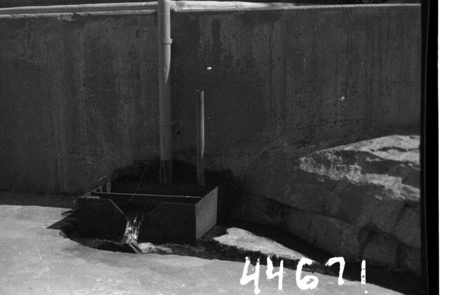 Big Creek, Huntington Lake Dams - [shot is of Dam 7 and Redinger Lake, not Huntington Lake] - Expansion-contraction joint between blocks 4 & 5, at station 4+21.5, elev. 1355.