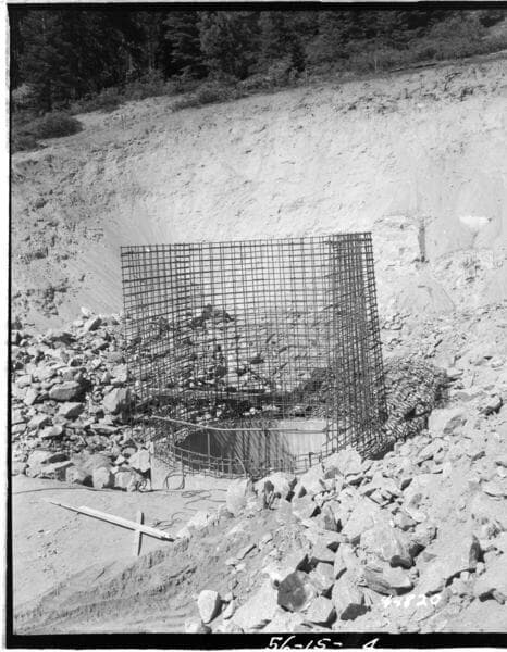 Portal Powerhouse - Placing reinforcing steel for concrete disc, steel plate bulkhead.