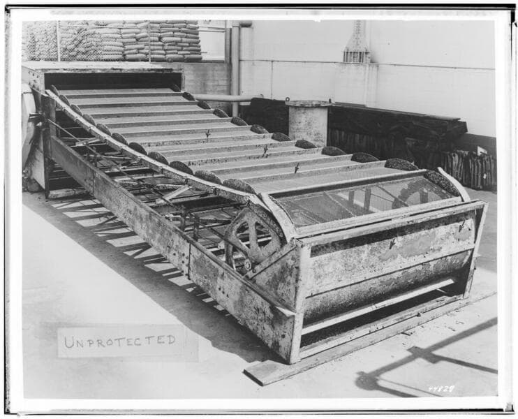 Power Producers - Not SCE - San Diego Gas & Electric Co. - Close-up of unprotected circulating water screen [from the cooling water intake system at a steam plant - protection appears to be related to corrosion of the rotating screen assembly].