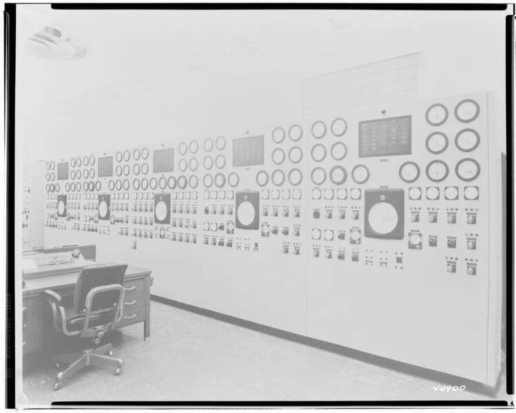 Redondo Beach Steam Station - Plant #1 - New Turbine panels and Station Master Panels, inside view (Central Control Room).