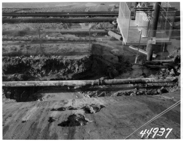 Long Beach Steam Station - Gas line - Typical Union Pacific RR Gas tap on 16" gas line. View in oil field looking west.