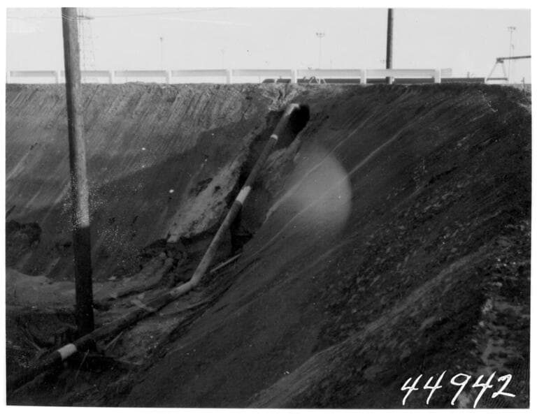 Long Beach Steam Station, Plant #3 - view of eroded dike near outfall.