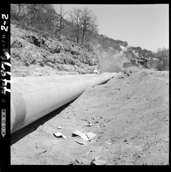 2-3 Tule Siphon - Progress photo, pipe partially in place between center ridge & "21" draw. (in same sleeve as 44976)