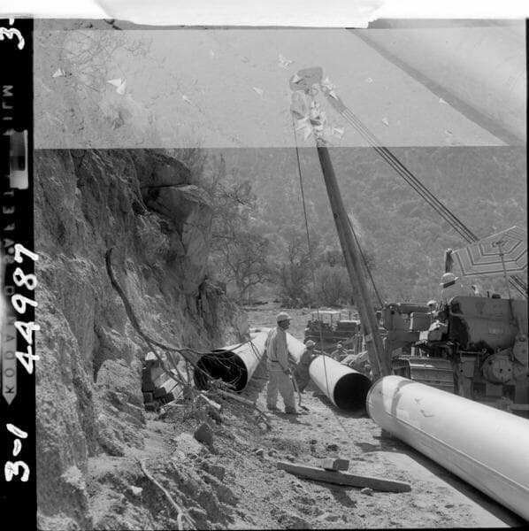 2-3 Tule Siphon - Progress photo, pipe partially in place between center ridge & "21" draw. (in same sleeve as 44976)
