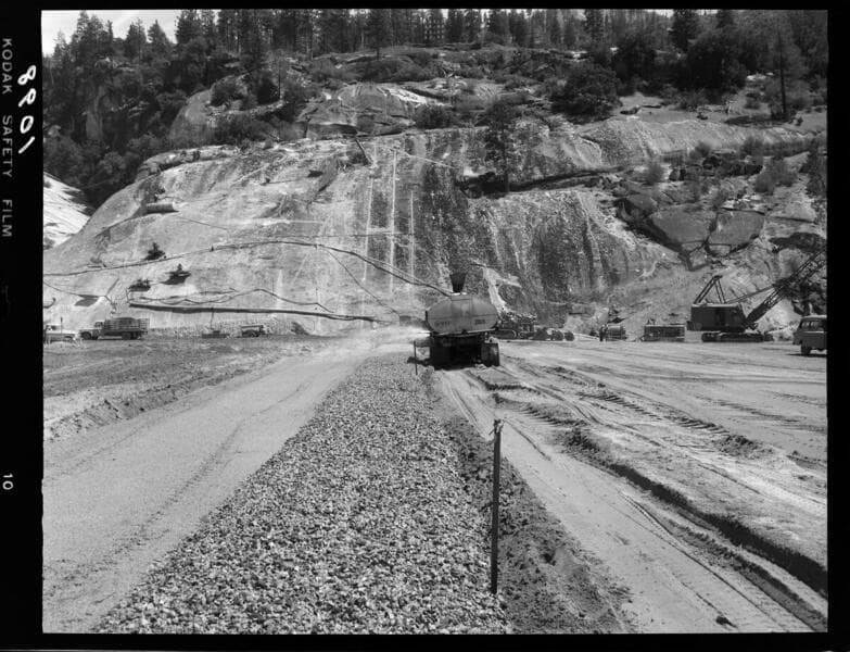 Big Creek - Mammoth Pool - Dumping rock in vertical drain.