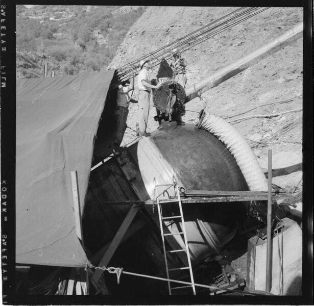 Big Creek - Mammoth Pool - [installing penstock Wye Branch ? at powerhouse]