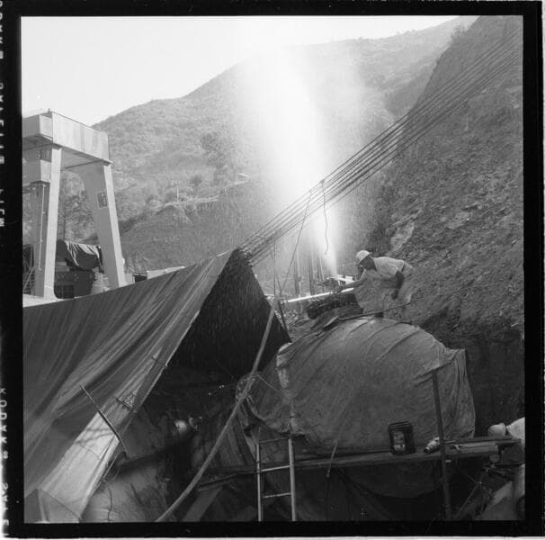 Big Creek - Mammoth Pool - [Engineers bleeding water pressure at penstock? during construction at powerhouse]