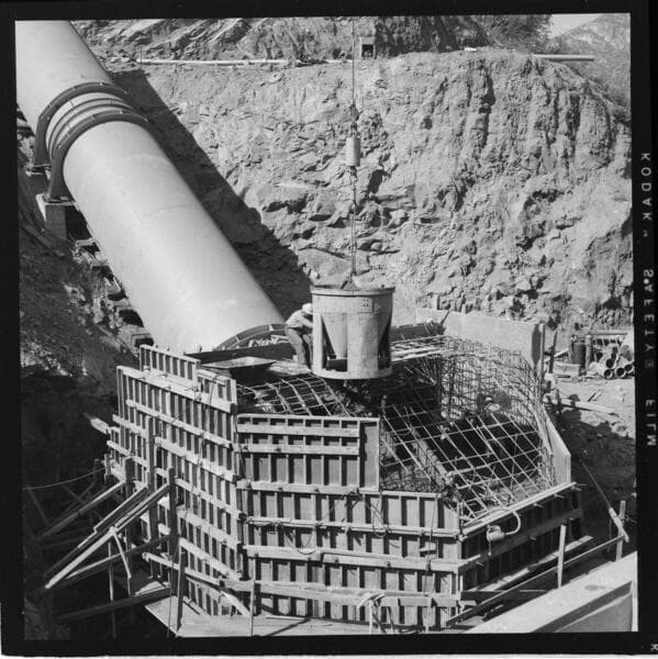 Big Creek - Mammoth Pool - Pouring dental concrete on east abutment