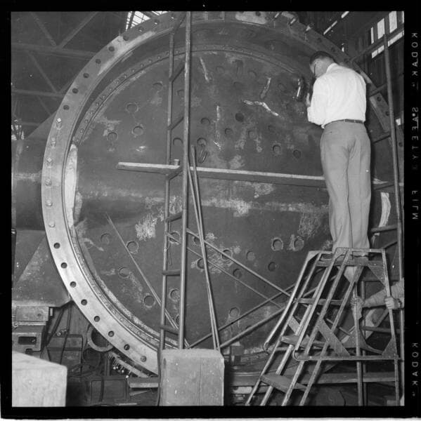 Big Creek - Mammoth Pool - [Engineers working with large penstock flange? at powerhouse]