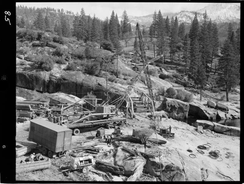 Big Creek - Mammoth Pool - Construction of San Joaquin Pony Truss Bridge.