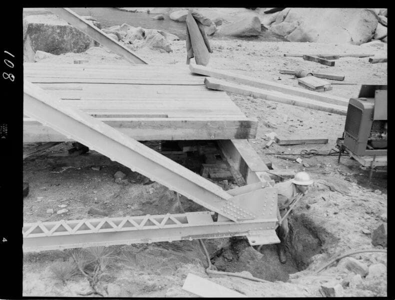 Big Creek - Mammoth Pool - Installation of Pony Truss Bridge across San Joaquin River.
