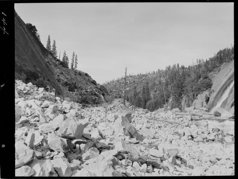 Big Creek - Mammoth Pool - Shot rock on West abutment of dam area, view looking North