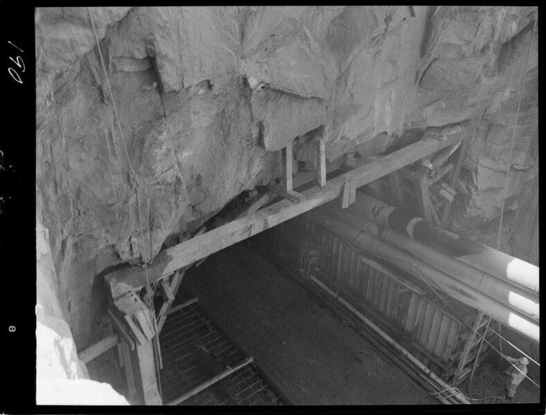 Big Creek - Mammoth Pool - Removing rock from diversion tunnel portal.