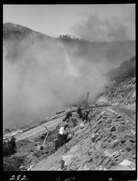 Big Creek - Mammoth Pool - Drilling boulders in river bottom of damsite