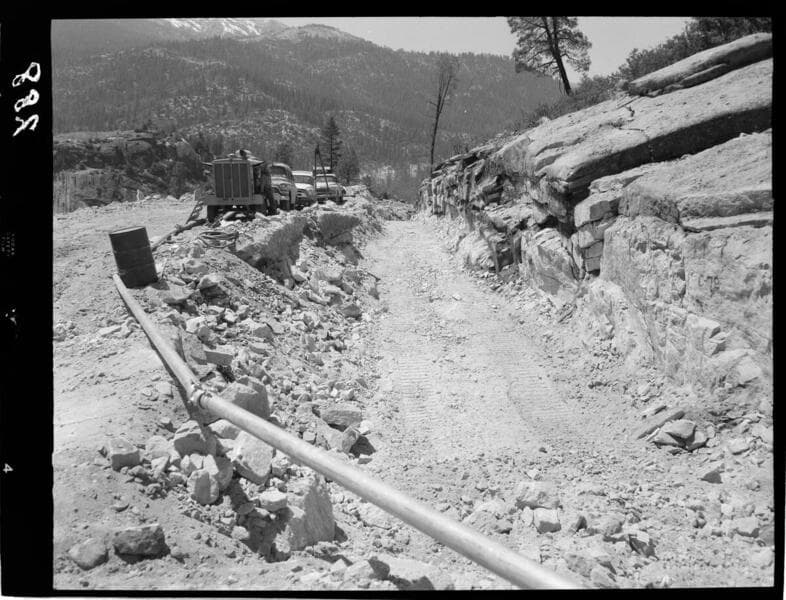 Big Creek - Mammoth Pool - Drilling operation at Daulton Creek diversion channel.