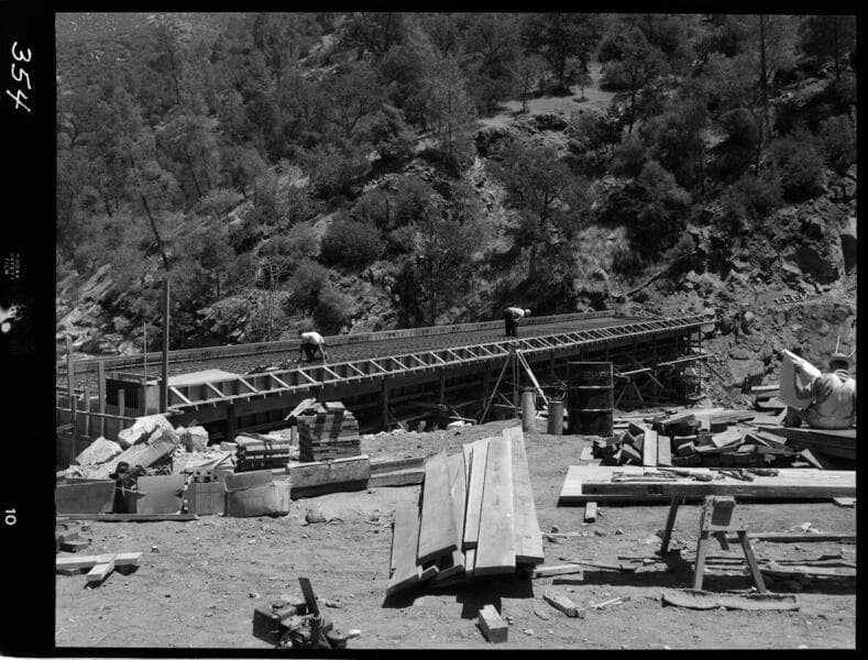 Big Creek - Mammoth Pool - Finishing first concrete deck of powerhouse bridge.