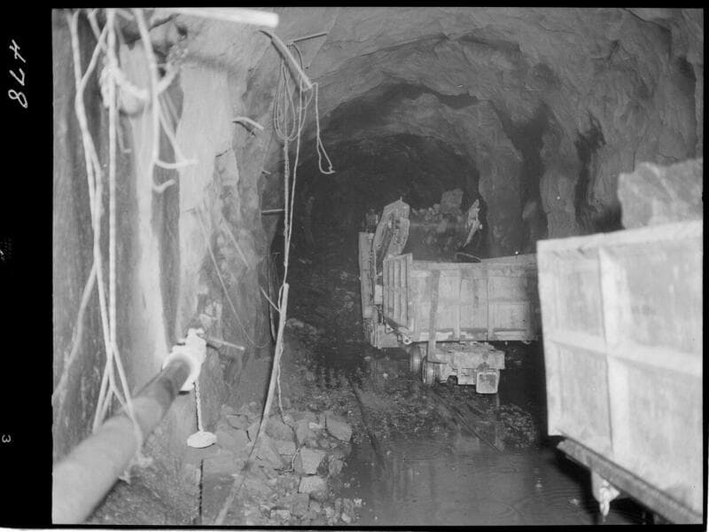 Big Creek - Mammoth Pool - Lifting dump car in mucking operation at outlet heading
