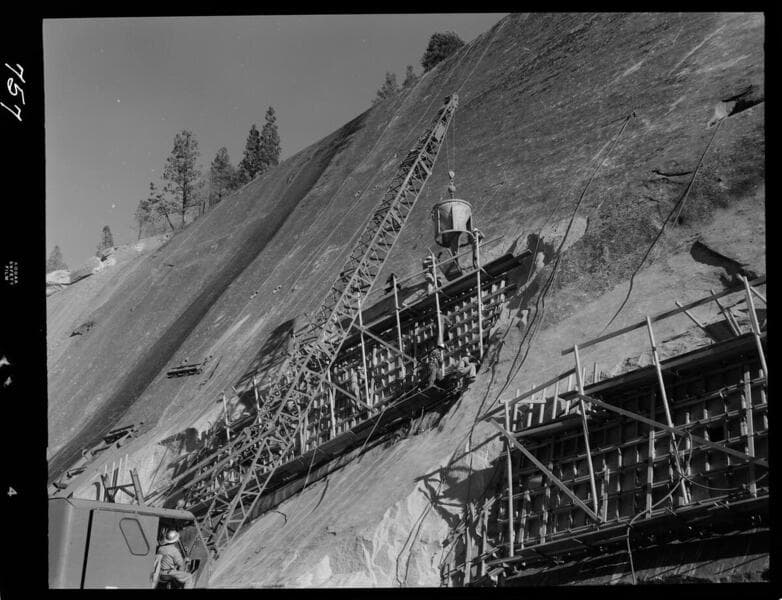 Big Creek - Mammoth Pool - Pouring dental concrete on east abutment