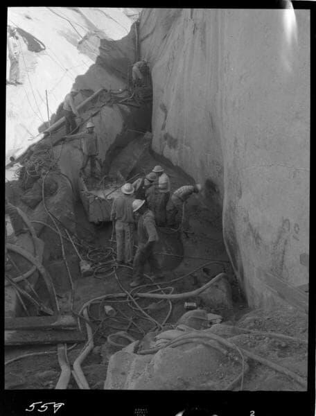 Big Creek - Mammoth Pool - First placement of dental concrete in cutoff trench