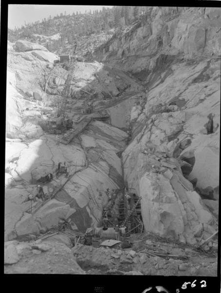 Big Creek - Mammoth Pool - First placement of dental concrete in cutoff trench