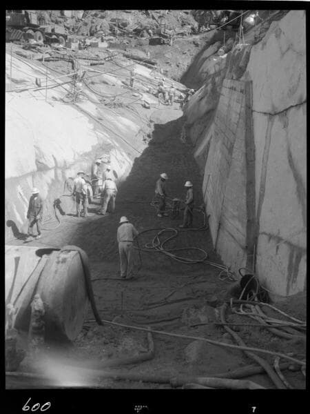 Big Creek - Mammoth Pool - Slush grouting in bottom of cutoff trench - looking downstream.