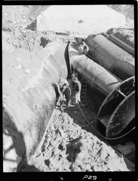 Big Creek - Portal Powerhouse - [workers welding penstock sections. ]