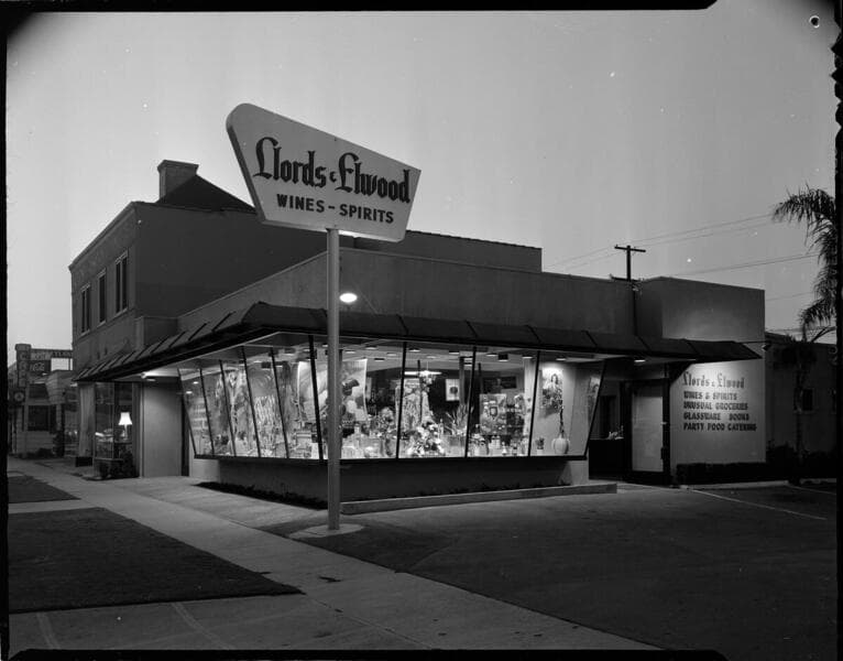 Image of an eye-level view of the storefront of the three-story brick building of the distillery and office of August Baetzhold in Buffalo, New York, showing horse-drawn carts moving barrels of spirits, a horse-drawn omnibus full of passengers, and pedestrians on the street outside; "A. Baetzhold" and "Rectifier of Spirits. Wholesale Wines & Liquors." painted on the building; a church steeple is visible in the background.